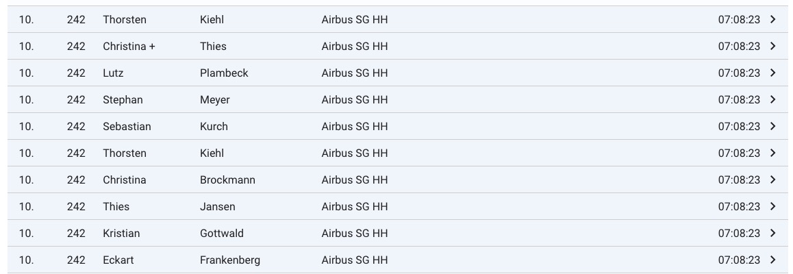 Airbus SG HH - Platz 10 der Firmenwertung mit 7:08:23
