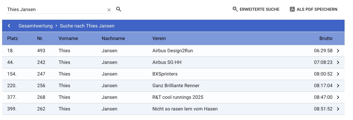 Etwas undurchsichtig ist die Teilnahme von Christina Brockmann und vor allem von Thies Jansen, der offensichtlich in noch mehr Teams dabei war Aber im Ernst, das ist das Ergebnis der Airbus SGen: